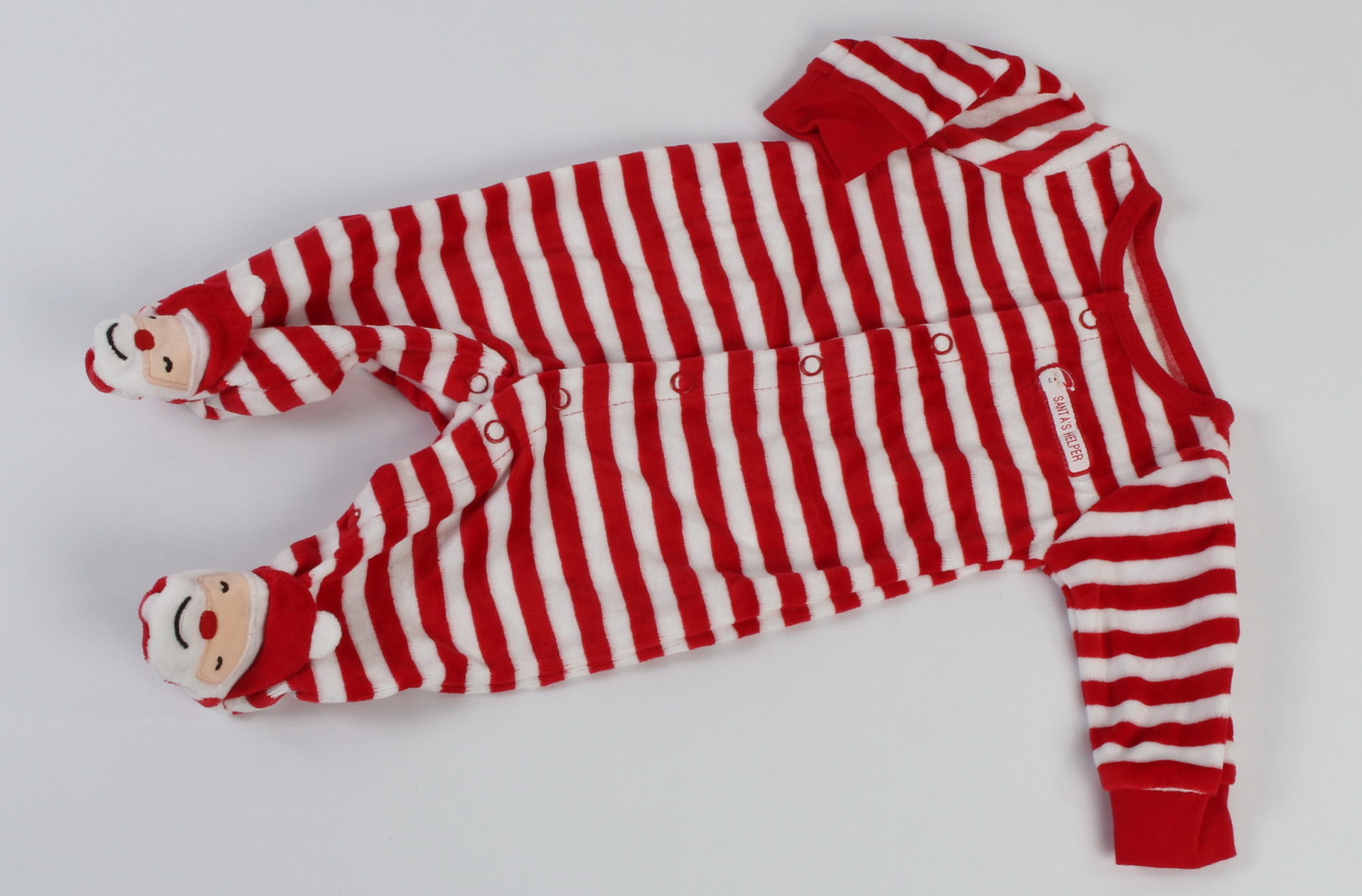 #سرهمی نوزادی دخترانه مخمل کارترز که جورابدار بوده و روی جوراب طرح بابانوئل دارد.