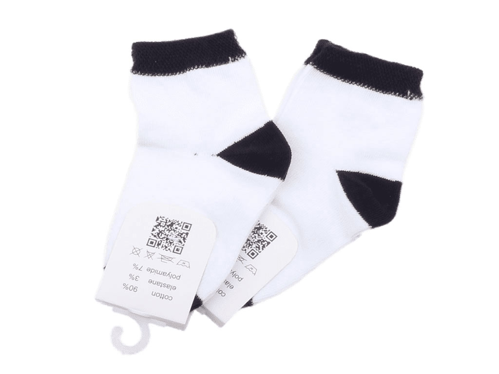 جوراب ساق دار دو رنگ، جوراب ساق دار بچگانه با ترکیب رنگ سفید و مشکی که دارای شش سایز مختلف شامل 9-6 ماه، 2-1 سال الی 10-9 سال می باشد.