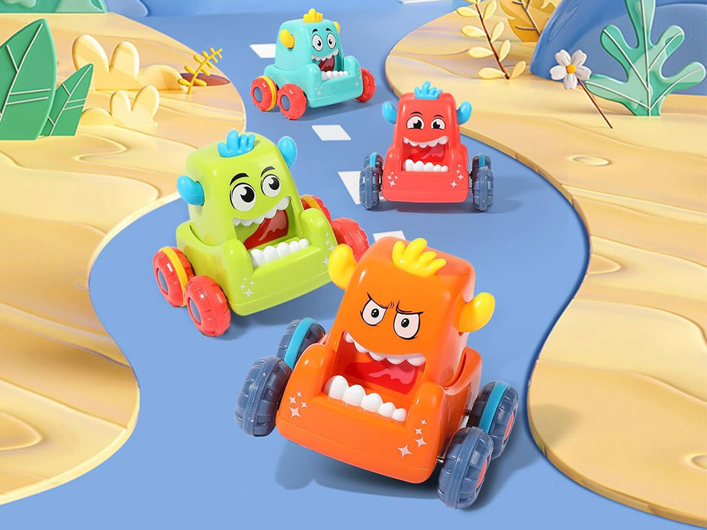 این اسباب بازی فشاری دارای طرح ماشین هیولا می باشد.