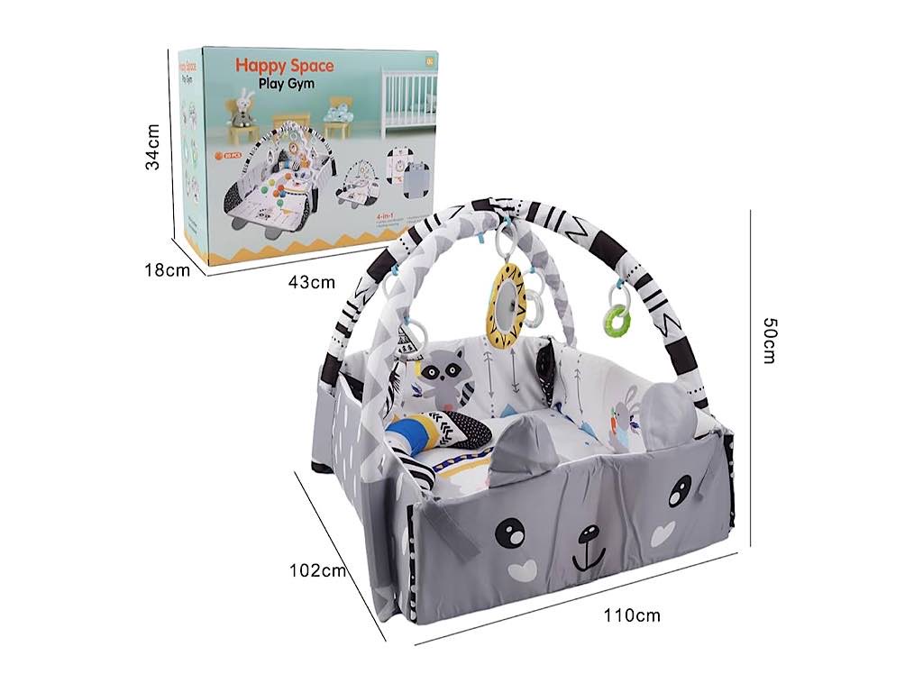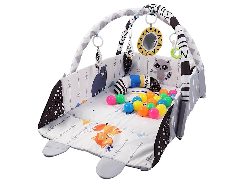 تشک بازی 3 کاره دارای جغجغه و توپ رنگی مدل خرگوش و حیوانات جنگل