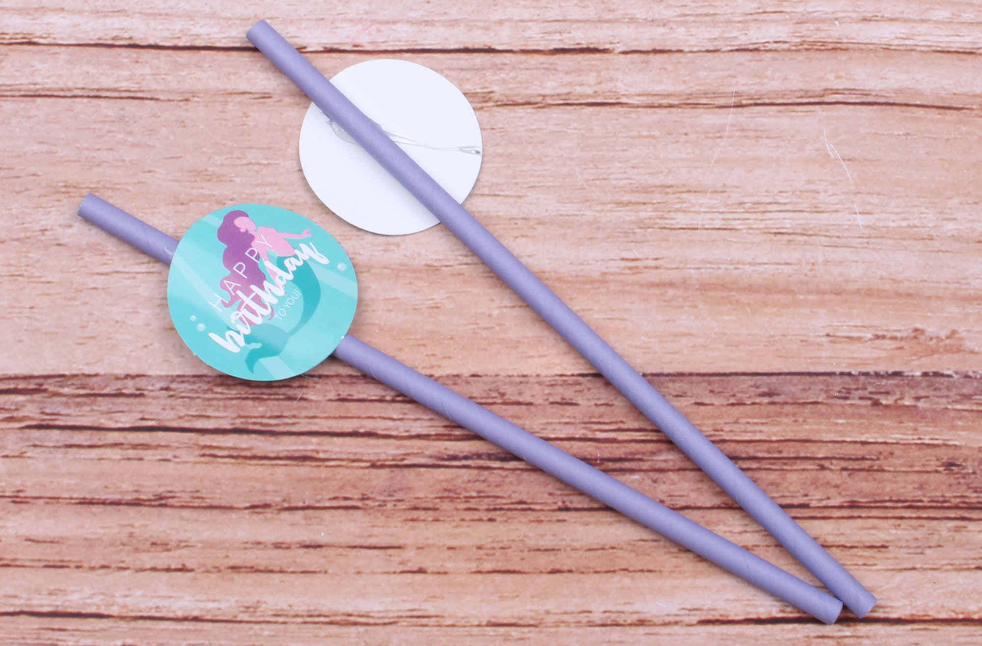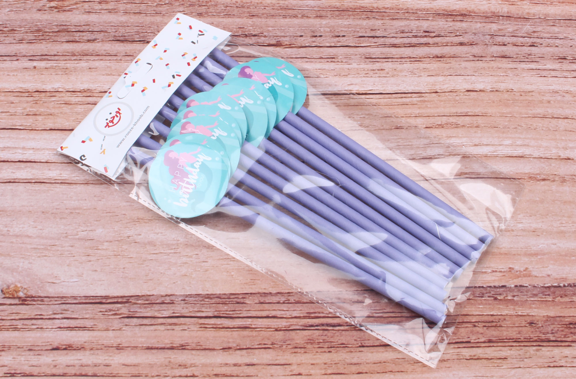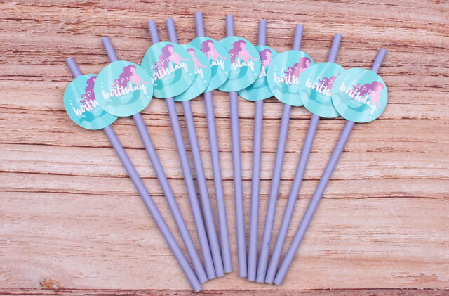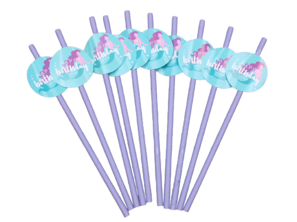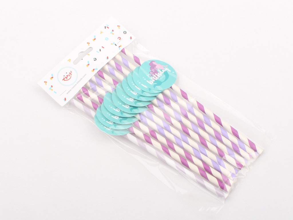 #نی دخترانه پری دریایی به رنگ یاسی همراه با لیبل پری دریایی که هر بسته شامل ده عدد نی می باشد.